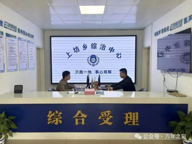 上坊乡摒弃了以往治理力量“碎片化”、群众办事“多头跑”的旧模式,紧扣“五有五规范”目标,打造了240平方米的实体化治理平台。这不仅是将平安法治、信访、司法、“E呼即办”等职能和人员“搬”进一扇门,更是通过统一的组织架构(由乡党委书记挂帅)、专业的队伍配置(专职人员+特色调解队伍)和清晰的功能分区(“一窗四室”),实现了治理资源的战略性重组。群众“只进一扇门,最多跑一地”,背后是基层治理从被动响应向主动整合、从条块分割向一体联动的理念跃升。“综治中心”由此从一个场所概念,升维为一个集决策、协调、执行于一体的“治理中枢”。