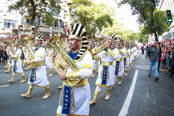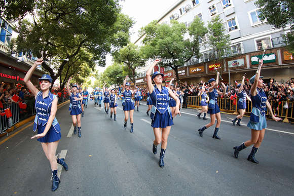 参演乐队正在巡游表演。(马悦 摄)