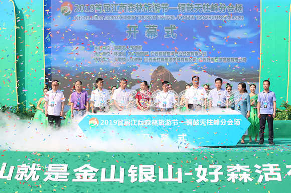 香港经济导报江西频道网讯(何旭)8月17日上午,风景秀丽的铜鼓县天柱峰国家森林公园天柱峰景区人潮涌动,2019首届江西森林旅游节分会场活动在此拉开序幕。开场表演《鼓舞铜鼓》、客家山歌《唱起山歌歌对歌》、舞蹈《清茶飘香》等节目,秀出了极具铜鼓地域特色的客家文化和茶文化,秀出了铜鼓客家人的热情好客……