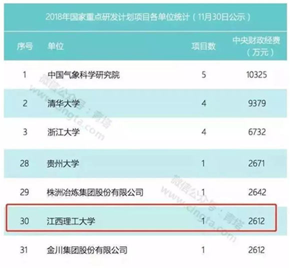 江西理工大学围绕有色产业发展的战略需求,积极开展了一批高水平科研项目。近3年,该校获批国家自然科学基金150余项,获批项目中2/3以上的研究内容围绕有色产业发展需求展开。2018年,江西理工大学首次获批主持国家“十三五”重点研发计划项目“中部矿业特色产业集聚区固废资源利用集成示范”,获批经费2612万元。该项目主要针对中部矿业特色固废资源化利用及生态环境保护,全面引领提升固废资源化科技支撑与保障能力,促进壮大资源循环利用产业规模,为大幅度提高我国资源利用效率,支撑生态文明建设提供科技保障。项目的实施,无论是在有色及陶瓷固废资源的技术开发,还是有色及陶瓷固废资源的利用研究,都将实现质的飞跃,推动我国在有色及陶瓷固废研究领域达到国际领先水平。