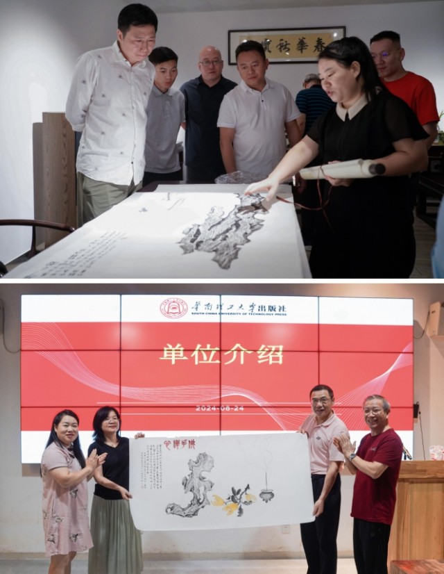 在粤交流期间,赣州市客家文化遗产研究院副院长叶愉分别向广州创意产业协会、华南理工大学出版社赠送了赣州市非遗代表性项目客家传拓作品《米芾拜石图》《佛手禅心》,以赣南客家传统工艺美学链接起赣粤两地的深厚情谊。