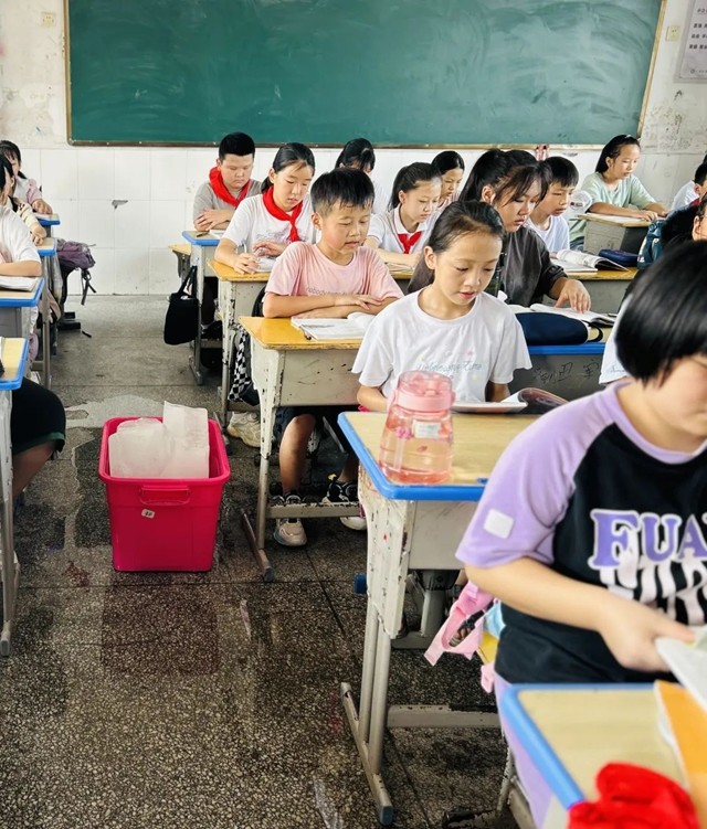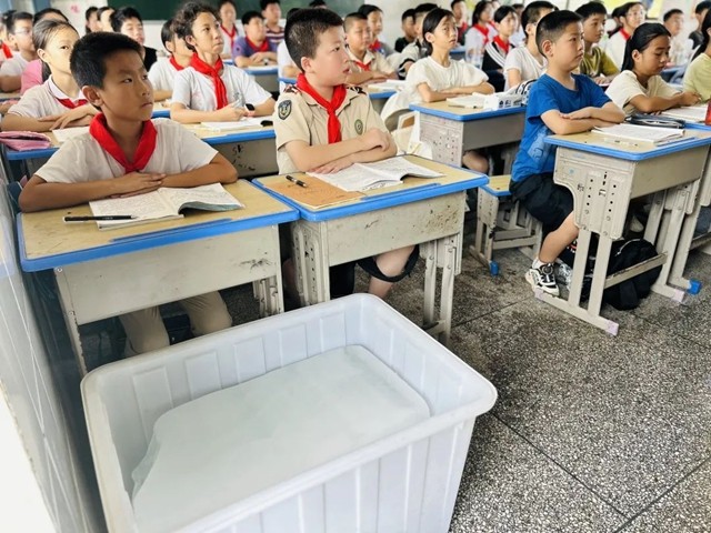 面对学校的关怀,家长们备受感动,积极志愿加入装运冰块的工作中。热浪滚滚的教室瞬间散发出丝丝凉意,冰块在一定程度上降低了室内的温度,同学们脸上露出了舒心的笑容。