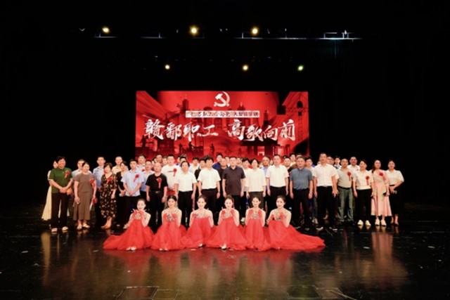 9月5日,由江西省总工会主办,鄱阳县总工会承办的“亿万职工心向党”大型情景剧《赣鄱职工 高歌向前》在鄱阳县赣剧院精彩上演。县领导梁玥、万晓春、郑佐周、吴文艺、郑晓明、张鹏、杨军、王梅武等出席并观看演出。劳模代表和各行各业的一线职工代表1000余人共享视听盛宴。