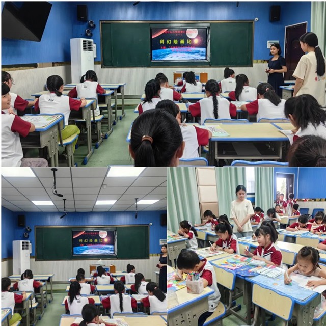 参加比赛的是各班推选出的代表。活动现场,孩子们热情洋溢地进行科幻绘画创作。他们用色彩丰富的画笔,描绘出一个个独特的未来世界。有的未来城市中高楼大厦林立,有的未来世界中机器人与人类和谐共生,还有的未来宇宙中星际飞船穿梭在星辰大海之中。每一幅画都充满了想象力和创造力,展现了学生们对未来的无限憧憬。