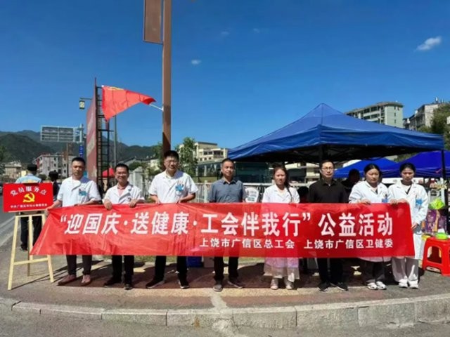 国庆佳节期间,为了深入贯彻国家“健康中国”战略,提高公众的健康意识,并为广大游客提供贴心的健康服务,上饶市广信区总工会与广信区卫健委于10月4日联合在风景秀丽的望仙谷和灵山等地,共同举办了以“迎国庆・送健康・工会伴我行”为主题的公益活动。