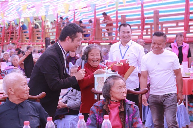 在文艺节目中穿插了为当天生日的老人过生日,老人在远方孙子通过视频为老人送生日祝福、老人在家子女为生日老人送花送蛋糕,并为所有到场老人吃蛋糕过集体生日,齐唱《生日快乐》歌。捐助此次活动的爱心人士代表陈志翔、彭雪玲发言等环节。文艺节目结束后县妇联为每位老人发放了毛巾肥皂小礼品,在老人现场用餐后县妇联为老人剪头发。过此次活动,引导了全社会关心关爱老人,营造了尊老爱老敬老的浓厚氛围,弘扬了重阳传统节日。