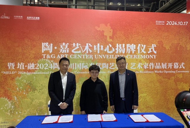 香港经济导报华东频道网讯(胡龙生)10月17号下午,“陶·嘉艺术中心”揭牌仪式及埴·融2024陶溪川国际当代陶艺驻留艺术家作品展开幕式在景德镇陶溪川文创街区举行。