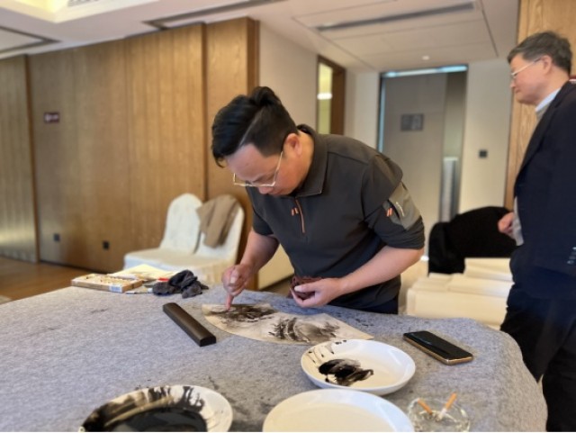 点、擦、划、勾……在灵活的手指与掌纹的勾勒下,中国现代指掌画传人肖洪波刚柔共济地描绘出了一副大气磅礴的武功奇峰。“指掌画的精髓在于利用手掌的自然纹理,需要扎实的美术基础与功底,此次游武功大大激发了我的创作灵感,一连创作了好几幅奇观美景。”肖洪波表示,希望通过他的作品,能够向更多的全球游客推介武功山。