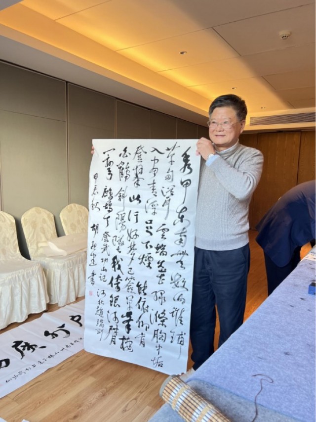 一副青绿长卷,怎少得了诗词来配?江西省诗词学会会长胡迎建创作的《高山草甸》直抒胸臆,“云低日近叩天门,草甸茅疏树不存。四望乾坤无障碍,群峰拱卫金顶尊。武功山是艺术瑰宝,耐人寻味,初登武功,我就被它吸引,创作灵感如泉涌而至。”创作间隙,胡迎建不禁连连感慨。