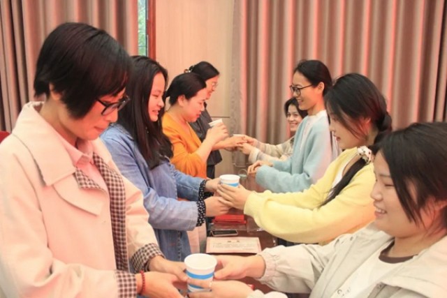 接着,学校领导为“师傅”们颁发聘书。领导颁发聘书,寄予的是信任和期许;老师接过聘书,接受的是责任和担当!“科研春色难关住,一地芳菲汗水栽”。接下来是拜师仪式,徒弟向师傅躬行拜师礼,敬奉拜师茶。师傅恭坐饮茶、起身还礼。“万卷园丁书满腹,千盘桃李志夺魁”,由此结下师徒缘,种下教育恩,交流互鉴,并肩前行。