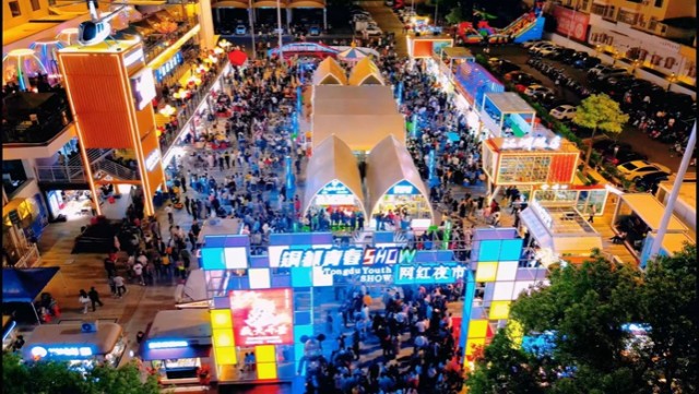 二是加快产业转型升级。2023年,为盘活老旧资产,增加城市活力,激活夜市经济产业,交投公司争取项目资金4千万元,充分挖局城南老汽车站市场潜力,以“聚拢是烟火,摊开是人间”的设计思路,共建成大小商铺60个,5000平大型停车场1个,打造了集建筑亮化、市民休闲、宵夜、音乐吧、功能性餐厅、小商品地摊经济为一体的铜都青春SHOW网红夜市综合体,成为德兴夜市经济一张闪亮的名片。