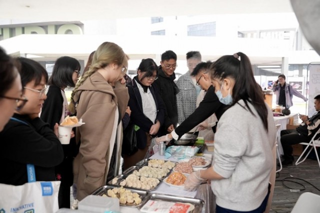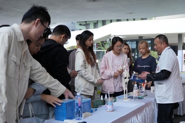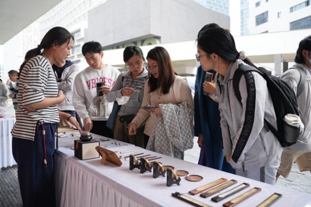 客家吉祥童帽、客家洞箫制作技艺引发了众多师生驻足围观,他们或惊叹于童帽的巧夺天工,洞箫制作的严苛;或好奇地询问制作细节,想要一探其中奥秘,或亲手触摸感受,仿佛穿越时空,触摸客家先人的智慧与匠心。