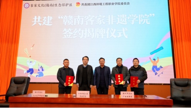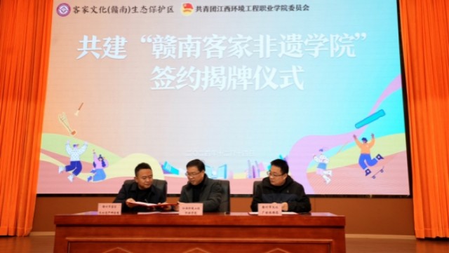12月14日,“赣南客家非遗学院”揭牌仪式在江西环境工程职业学院举行。
