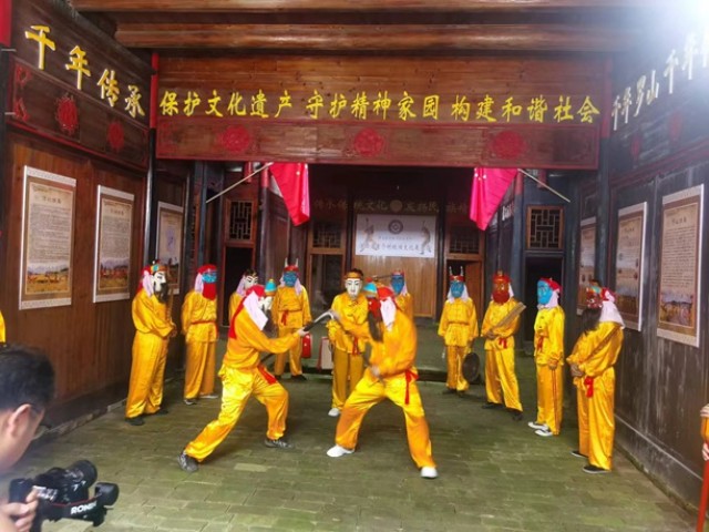罗山村为防匪防盗,抵御外敌,自古以来,村民们习武成风,强壮彪悍,而傩班人员也大都是从武术队里挑选,因此罗山傩舞中融合了许多武术动作,整个跳傩过程充满比武打斗场面,气氛热烈,火药味很浓,因而村民将跳傩称为“打戏头古”(也称“打戏面”)。