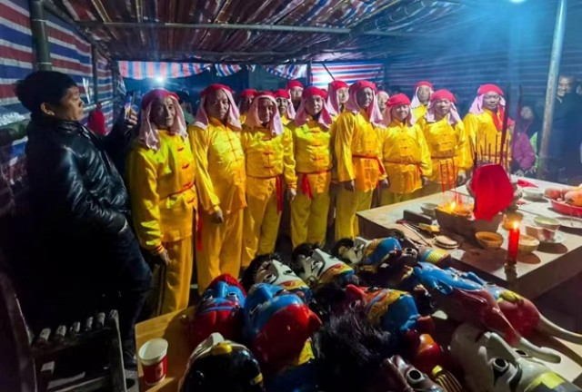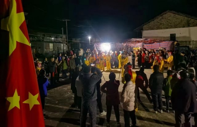 罗山“打戏头古”的习俗是每年农历四月十五整装“出箱”,先到外地表演,三十“回马”,五月初一至初五在本村各家各户跳傩,请与不请,由各户定,请了的傩班进入厅堂厅院表演,不请的也要在他家门前敲一阵锣鼓,名曰“窜跃”,代为驱邪,以求傩神保佑全村平安,风调雨顺,五谷丰登。