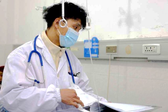 在疫情期间,医院参与了防控,当时把急诊科和内一科做成隔离病房,周发安在里面工作了40天。一个人守着隔离病房,精心照顾好病人,虽然家就在医院附近,但为了工作,他是“舍小家为大家”。