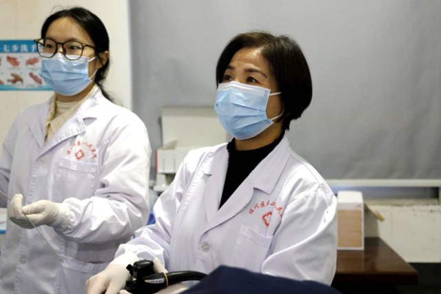 在王伟红的工作台前,她的学生围着她学习。她从上消化道的结构、常见疾病的内镜表现、诊断与治疗等方面,让学生可以从文字、图片上对胃镜有个大概的了解。再接下来,她会让学生在体外熟悉每个按钮、旋钮的操作,练习控镜的手感。等有病人的时候,她就对着屏幕讲解,带着学生领略胃食道、十二指肠的“风景”。随后,她让学生先从退镜练习,熟练退镜了以后便开始进镜。从手把手教学,到独自操作,通常经过1个月的努力学习,她的学生可以完成简单的操作了。