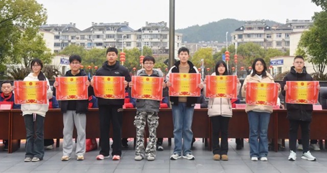随后,董小清、余建梅、吴彩虹、杨国栋、朱政、宋新发、乐蓉等学校领导分别宣读了2024-2025学年度第一学期文明班级、书香班级名单,阅读之星名单,各年级期末统考物理方向德兴市前20名名单和历史方向德兴市前10名名单,各班优秀班干、期末统考第一名、进步之星名单,学生会双优名单名单。与会领导为获奖班级和学生现场颁奖,并向他们表示祝贺。