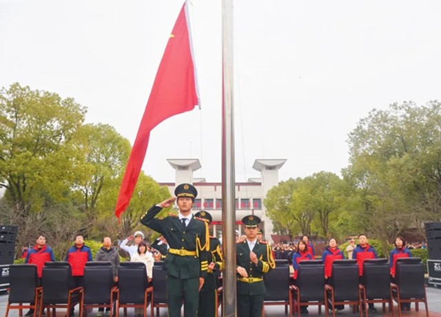 灵蛇启曙,丹心映山河。伴随着雄壮的国歌声,鲜艳的五星红旗冉冉升起,全体师生肃立注目,表达对祖国的无限热爱和崇高敬意。