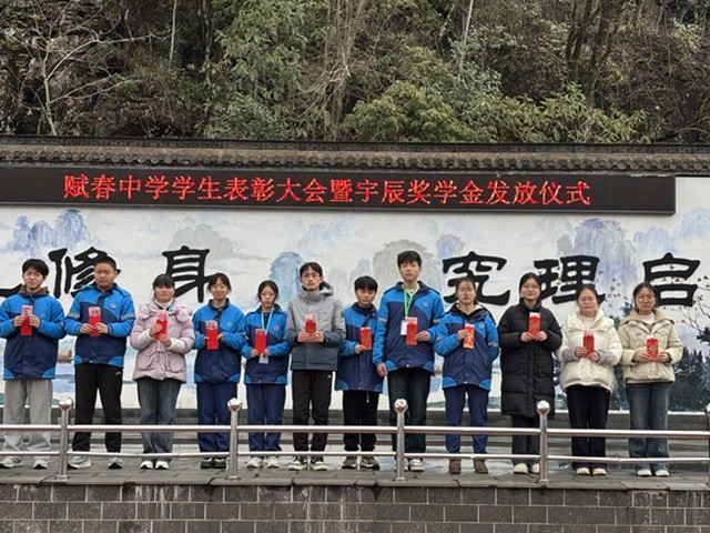 大会由副校长汪琦主持,气氛庄重而热烈。宇辰奖学金由赋春籍爱心人士、婺源县宇辰儿童用品有限公司董事长吴华飞先生捐赠,旨在鼓励赋中学子珍惜青春,刻苦学习,以优异成绩和拼搏精神为校争光。