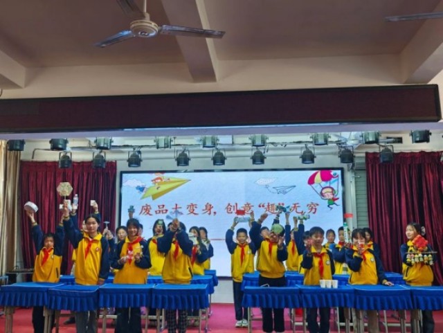 图为劳动技能大赛(高年级)变“废”为宝