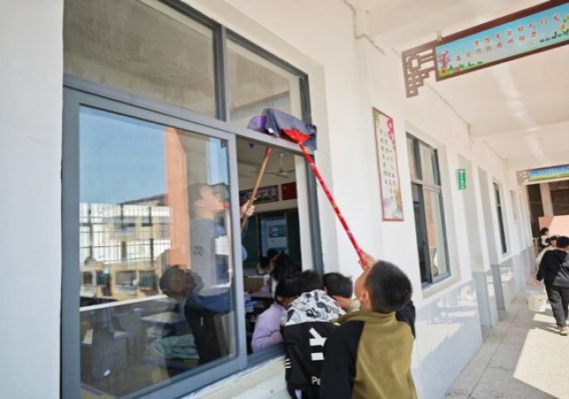 图为学生参加大扫除活动