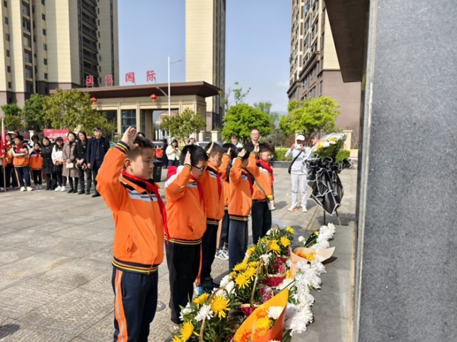 在烈士纪念碑前,少先队员们向烈士敬献了花蓝,向革命烈士鞠躬默哀寄托哀思,少先队员代表进行了献词,歌颂和缅怀先烈的革命精神和奉献精神。
