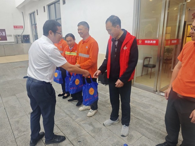 上午10时,揭牌仪式正式开始。汪群坤与服务区负责人共同为工会驿站揭牌。驿站配备了休息座椅、饮水机、微波炉、书柜、雨伞、wifi、医药箱、充电设备等基础设施,可为过往司乘人员及服务区职工提供临时休息、应急救助等服务。仪式结束后向服务区保洁、安保等20多名一线职工赠送了爱心礼包,总工会工作人员与他们进行了详细了解工作条件、存在困难,叮嘱管理方要切实保障职工合法权益,有困难要找工会。现场还发放了《工会法》《职工权益手册》等宣传资料50余册。