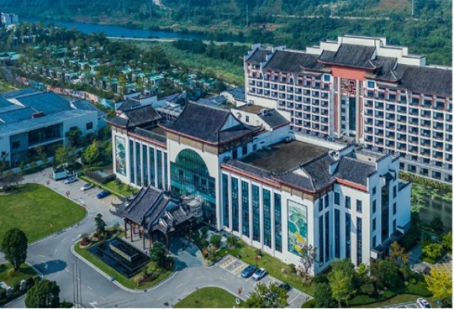 酒店系由2栋营业楼和1栋附属楼组成的园林酒店,总投资58607万元。占地面积33006.72平方米,建筑面积50104.32平方米,绿化面积23602.64平方米。