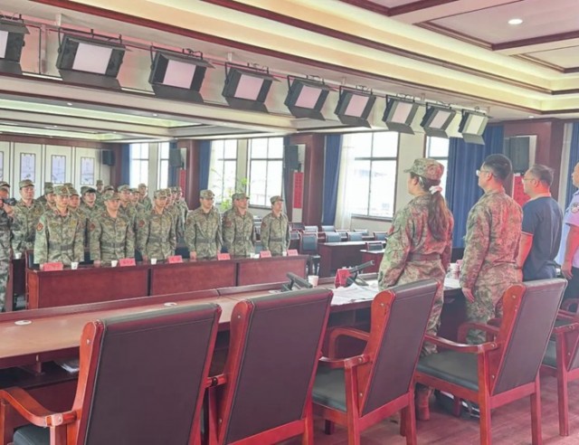 为进一步加强基干民兵组织建设,检验民兵整组工作成效,提升民兵队伍应急应战能力,5月6日下午,玉山县樟村镇2025年基干民兵集合点验大会在镇四楼会议室隆重举行。县人武部军事科科长刘永革、县公安局治安大队副大队长何俊出席会议,镇党委书记、民兵政治教导员郑家兴同步开展民兵政治教育。