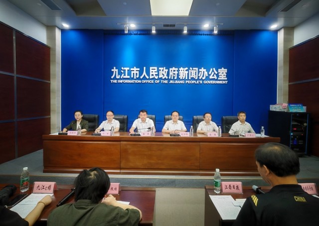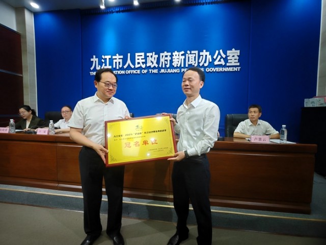 发布会上,九江市政府党组成员、副市长杜少华向邀请赛冠名单位“九江市文化旅游发展集团有限公司”颁牌。江西省龙舟协会秘书长袁昌,九江市八里湖新区党工委委员、管委会副主任卢景云,九江市文广旅局党组成员、副局长冷斌,九江市贸促会专职副会长蔡耀、九江市文旅集团党委书记、总经理张伟光等领导分别回答了记者提问。