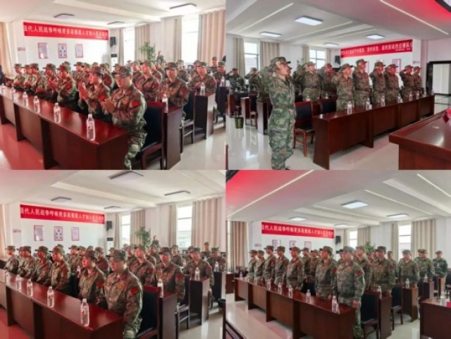 大会在嘹亮的《中国人民解放军军歌》声中拉开帷幕。全体民兵身着统一军装,军容严整、精神抖擞,以饱满的热情和昂扬的斗志接受点验。