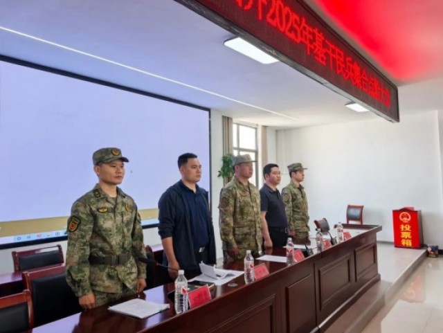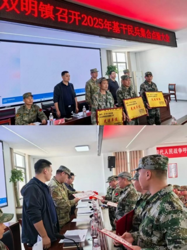 5月7日,玉山县双明镇召开2025年度基干民兵点验大会,进一步加强双明镇基干民兵队伍的教育、管理、训练工作,增强光荣感、使命感,提高民兵分队遂行任务的能力。县人武部上校部长周天红,镇党委书记、民兵政治教导员胥诗乐出席会议并作强调讲话,镇党委委员、武装部长方朝勇主持会议。