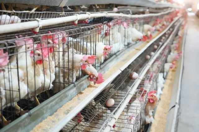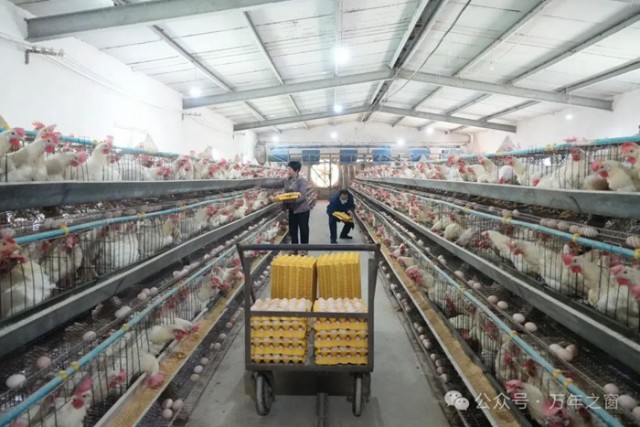 走进万年县汪家乡山下村的蛋鸡养殖基地,一排排标准化鸡舍映入眼帘,一层层鸡笼整齐排列,3间标准化圈舍里存栏的蛋鸡在下蛋,自动化喂食设备有序运转,工人们正忙着将一枚枚新鲜的鸡蛋分拣、打包。
