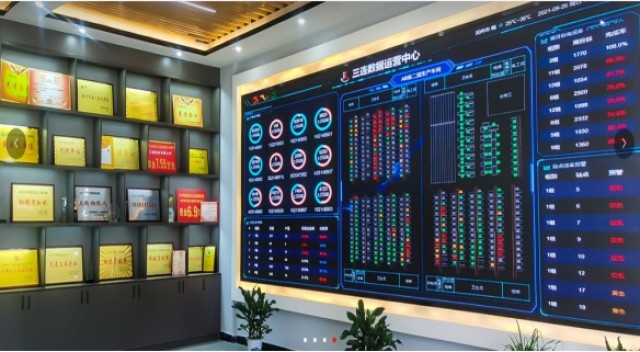 乐安“三连制衣”荣誉墙及数据运营中心。