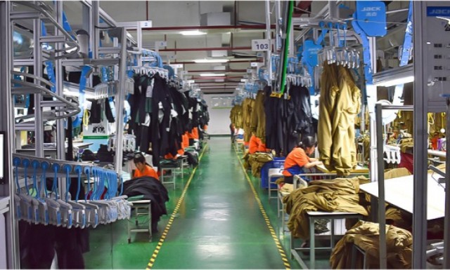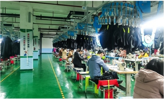 生产车间的吊挂系统为每件衣服赋予“智能导航”,生产进度等信息能够实时呈现,管理者能够精准及时把控生产节奏。运用先进的胶带压合技术替代车缝线传统做法,解决了漏水难题,为冲锋衣披上“防水战甲”。配置了国际一流的3D建模打版软件,3D建模与打样技术让服装从平面图纸中“立体展示”,消费者扫码即可360度领略服装魅力。