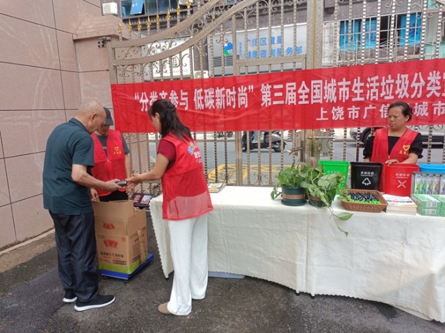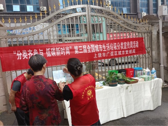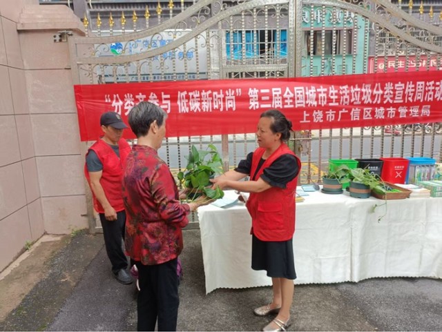 第三届全国城市生活垃圾分类宣传周已经拉开帷幕,为深化公众对垃圾分类重要性的认识,大力倡导绿色低碳的生活方式,5月22日,上饶市广信区城市管理局在名星广场小区开展了“分类齐参与,低碳新时尚”第三届全国城市生活垃圾分类宣传周活动。活动现场通过开展废品换绿植、垃圾分类知识讲解、互动问答等丰富多样的互动环节,将环保理念传递到居民的心中。