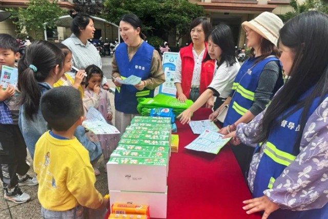 活动现场,蓝马甲宣传员与红马甲党员志愿者组成“分类先锋”小队,穿梭楼宇间播撒绿色种子。志愿者手中的宣传手册图文并茂标注分类标准,定制环保袋印着“减塑换绿”图案,甫一亮相便吸引居民驻足。他们一边用通俗语言讲解分类要点,一边递上环保袋轻声提醒:“这个袋子环保又实用,买菜购物可替代塑料袋。”