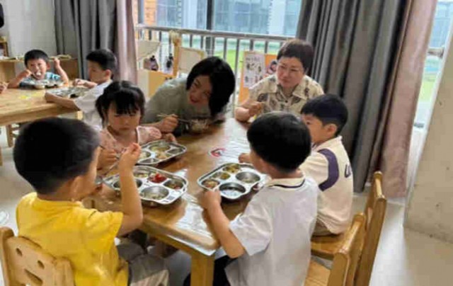 中午,欧庆所长走进幼儿园食堂,并与幼儿共同用餐。陪餐过程中,她耐心引导幼儿践行“光盘行动”,了解幼儿用餐喜好和食堂服务质量,同时与园方负责人就食品安全管理制度落实情况展开交流,强调要严格把控食品卫生安全,确保幼儿饮食健康。