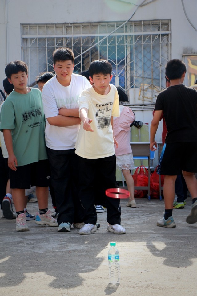 随着铃声响起,七年级的“游园乐园”瞬间落成。活动最大亮点在于由八个班级各自主理一个特色游戏项目,同学们手持游园卡,自由穿梭于各个游戏点。
