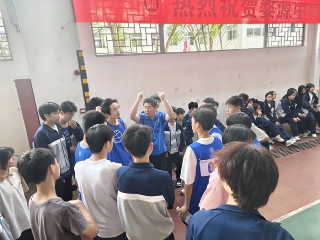 赛场上,球员们个个斗志昂扬、奋勇拼搏。他们灵活的运球、精准的投篮、巧妙的传球,以及默契的配合,无不展现出扎实的篮球技术和顽强的竞技精神。每一次进攻,都全力以赴;每一次防守,都严阵以待。场边,啦啦队的呐喊声整齐有力,如同一阵阵激昂的战鼓,为球员们加油助威;班主任们则在一旁进行战术指导,为球员们出谋划策;球员们之间相互击掌鼓励,传递着团结与信任的力量.整个赛场处处彰显着公平竞争、永不言弃、团结协作、突破极限的体育精神。