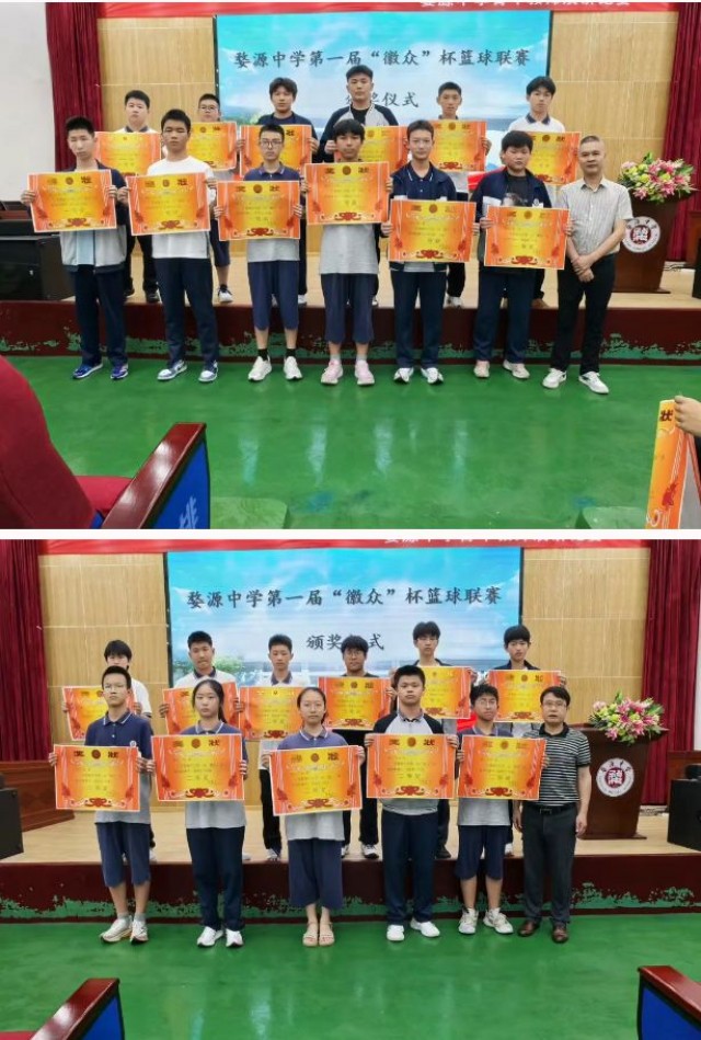 6月9日上午,婺源中学第一届“徽众”杯篮球联赛颁奖仪式在朱子讲堂盛大举行。校党委书记叶长青、校长潘华庆、副校长洪春荣亲临现场,为获得联赛一、二、三等奖的班级颁发荣誉,至此,为期一个月的篮球联赛正式画上圆满句号。