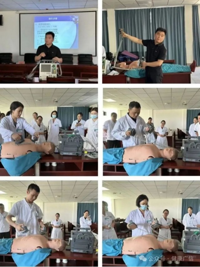 广信区总医院人民医院院区副院长黄朝发以“过敏性休克抢救”为主题开展专项培训,并结合临床急救场景,强化除颤仪实操训练。培训结束后,该院立即组织全员实操考核,旨在确保每一位医护人员都能熟练掌握除颤仪操作技能,切实提升应急救援能力。
