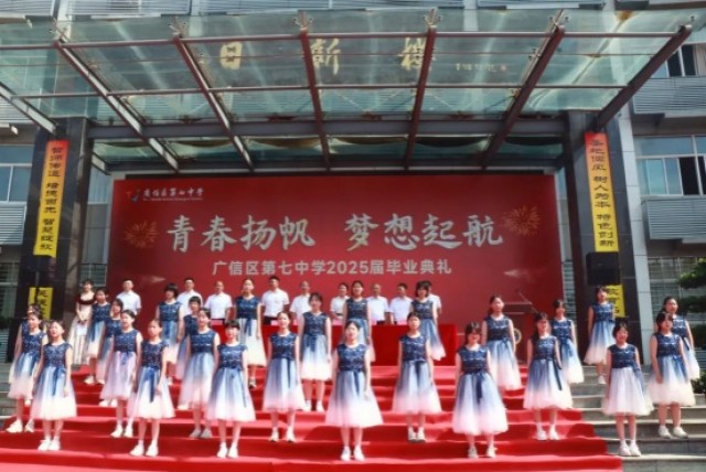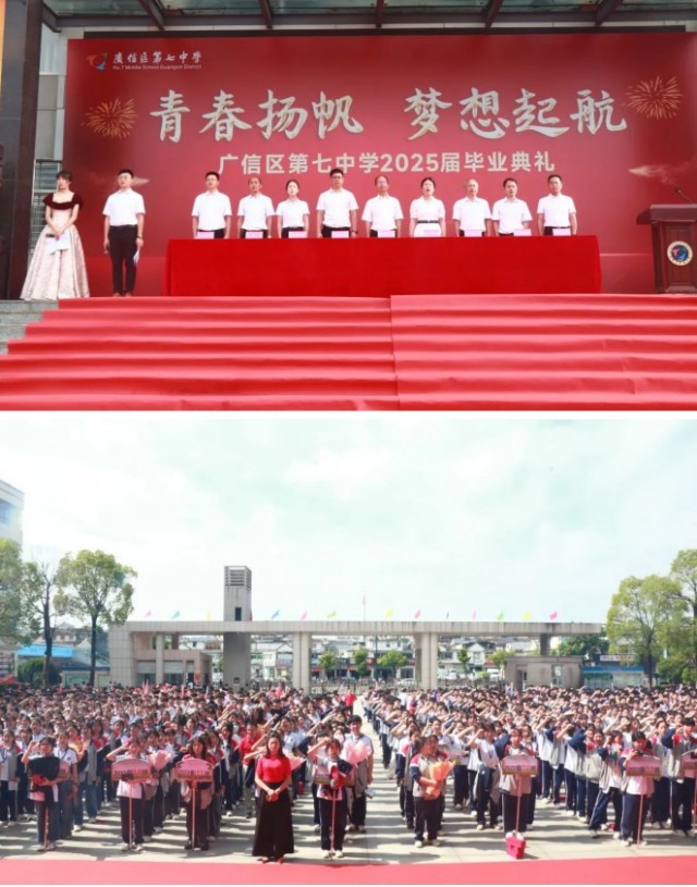 骊歌轻响,征帆已扬。6月16日,广信区第七中学隆重举行2025届九年级毕业典礼。校领导、全体九年级师生齐聚一堂,共同见证这一庄重而温馨的时刻,为青春喝彩,为未来壮行!