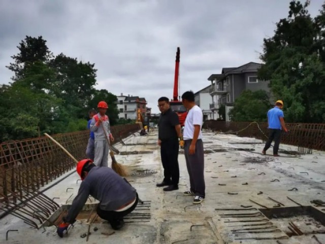 玉山县下镇镇党委书记舒越来到渎口村渎口桥危桥水毁重建工程的施工现场,通过听取项目负责人的汇报和检查现场等形式,了解项目进展情况并对施工现场开展安全隐患排查,对施工现场的警示标志、建筑材料堆放、安全生产制度等方面的工作进行了重点排查。