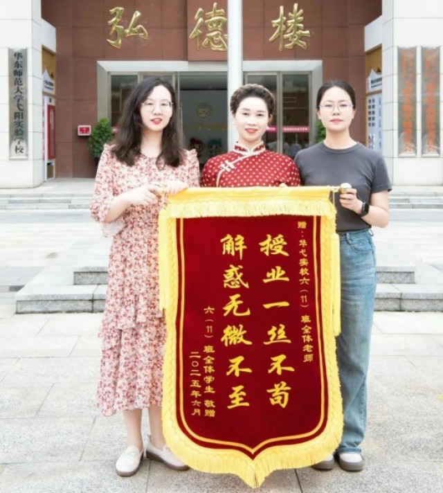 锦旗上“授业一丝不苟,解惑无微不至”的烫金题字,既是对老师们六年如一日勤恳耕耘、无私奉献的最高褒奖,也凝聚着家长心底最真挚的认可与感恩之情。