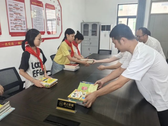 活动在温馨的赠书仪式中拉开序幕。青年干部们将精心挑选、承载着智慧与期望的图书赠予下溪小学的孩子们。一本本崭新的书籍传递着对知识的尊重和对未来的期许。青年干部代表在发言中勉励同学们以书为友,汲取力量,树立远大理想。