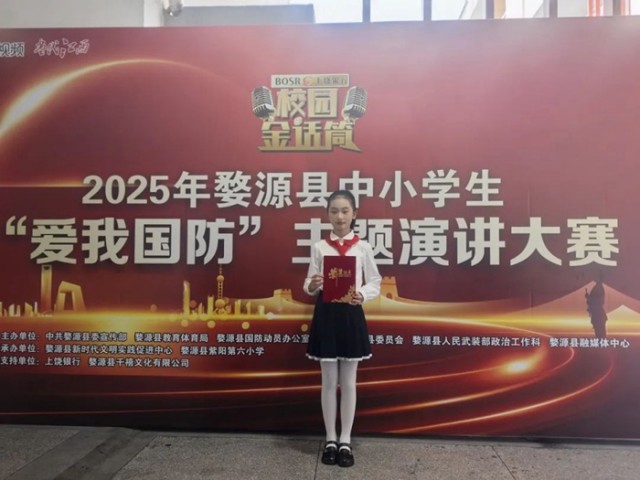 6月23日,婺源县中小学“爱我国防”主题演讲活动在紫阳六小火热举行,全县各中小学的优秀选手齐聚一堂,用激昂的言语诉说着对国防的热爱与担当。在这场激烈的角逐中,紫阳一小参赛选手表现出色,斩获佳绩,为学校争得了荣誉。