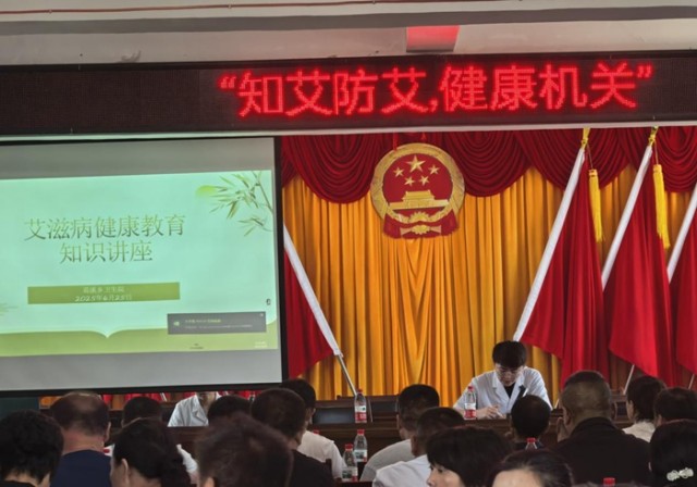 为进一步加强艾滋病防治宣传教育,提高群众自我防护意识,营造健康、和谐的社会环境,6月25日,弋阳县葛溪乡卫生院走进葛溪乡乡镇政府,开展了一场以“知艾防艾健康机关”为主题的健康教育知识讲座,乡镇干部职工、村代表及群众代表等90余人参加活动。