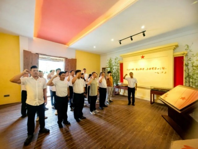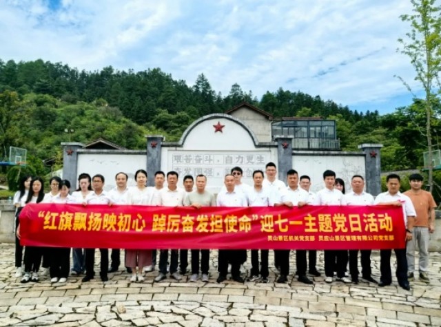 为庆祝中国共产党成立104周年,6月30日,灵山景区机关党支部、灵应山公司党支部联合在五府山镇共大园开展“红旗飘扬映初心踔厉奋发担使命”迎七一主题党日活动。